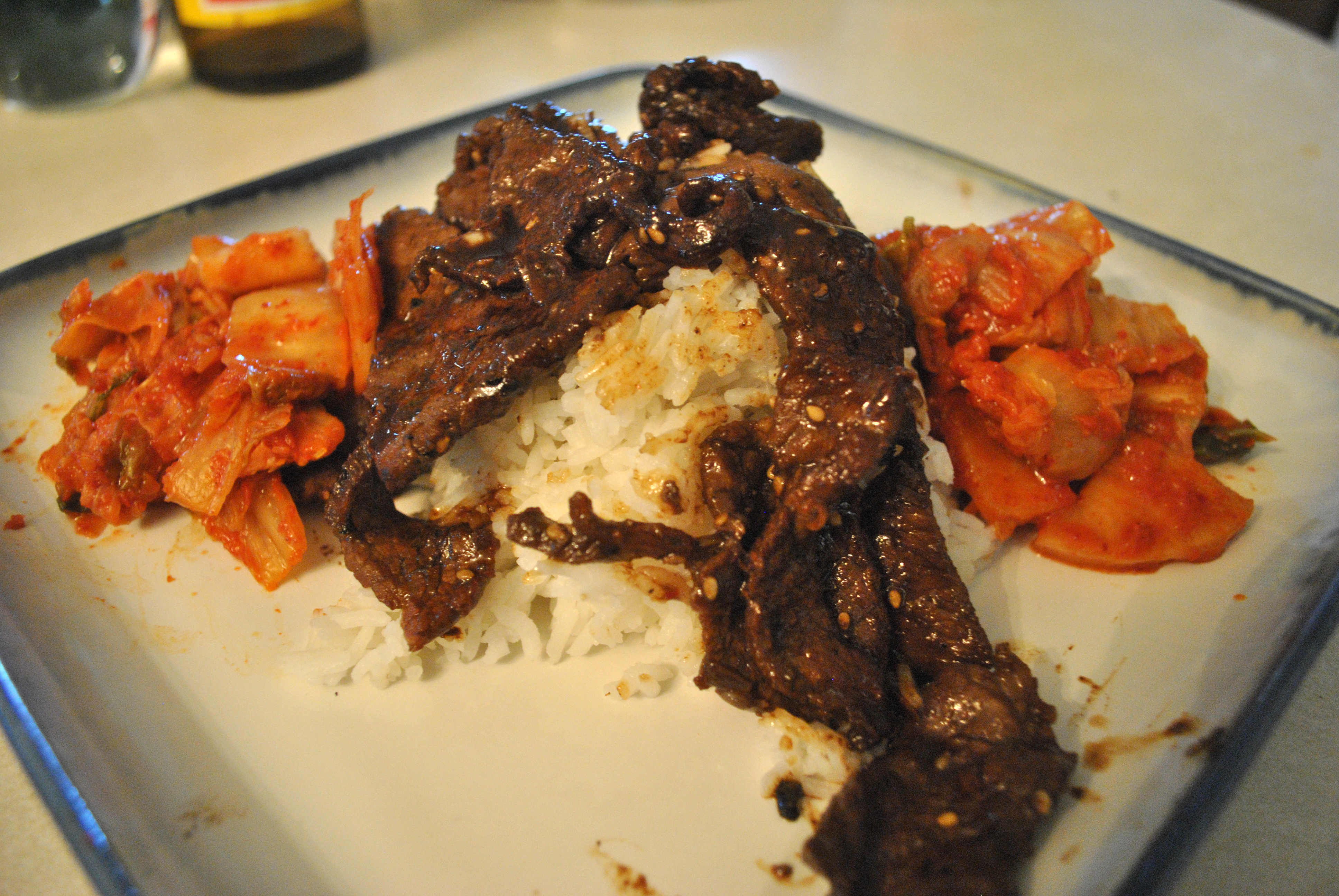 I used a ball tip asada (whatever that means), but I don’t think it was thin enough for bulgogi. It’ll do the job though.