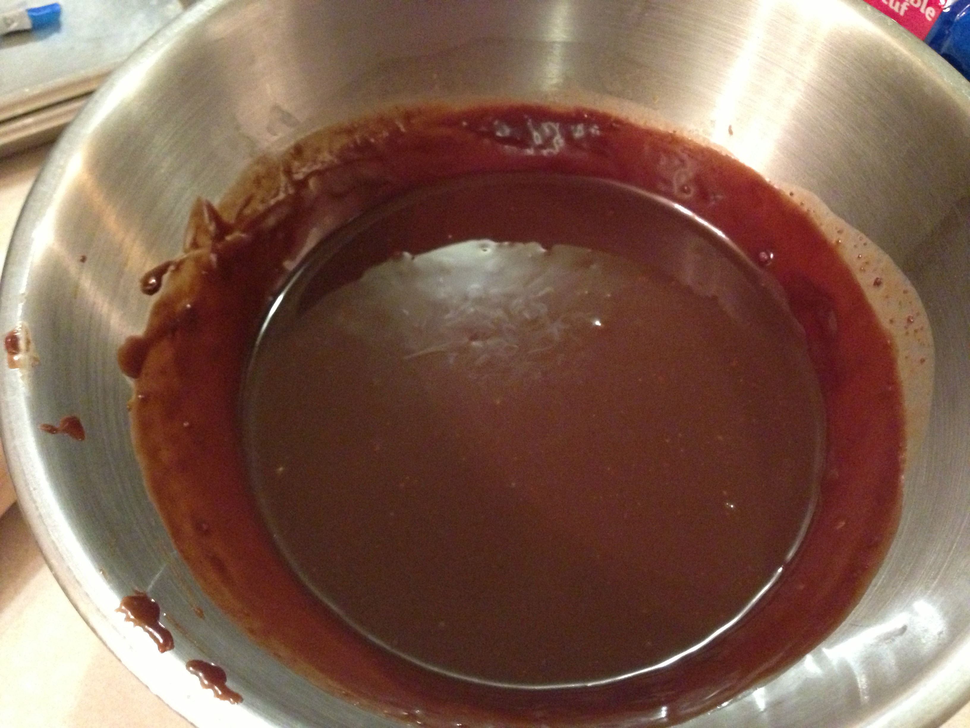 Quick night post: Dad said we should eat leftovers for dinner, so no Daddy Bee’s Dinner tonight. Instead, I’m starting on what will be called The Jason Truffle. It should be exciting, though this cheapo choco seems way too runny. Wish I could have bought my usual Ghirardelli’s, but they didn’t have it at Smart and Final. Lame.
