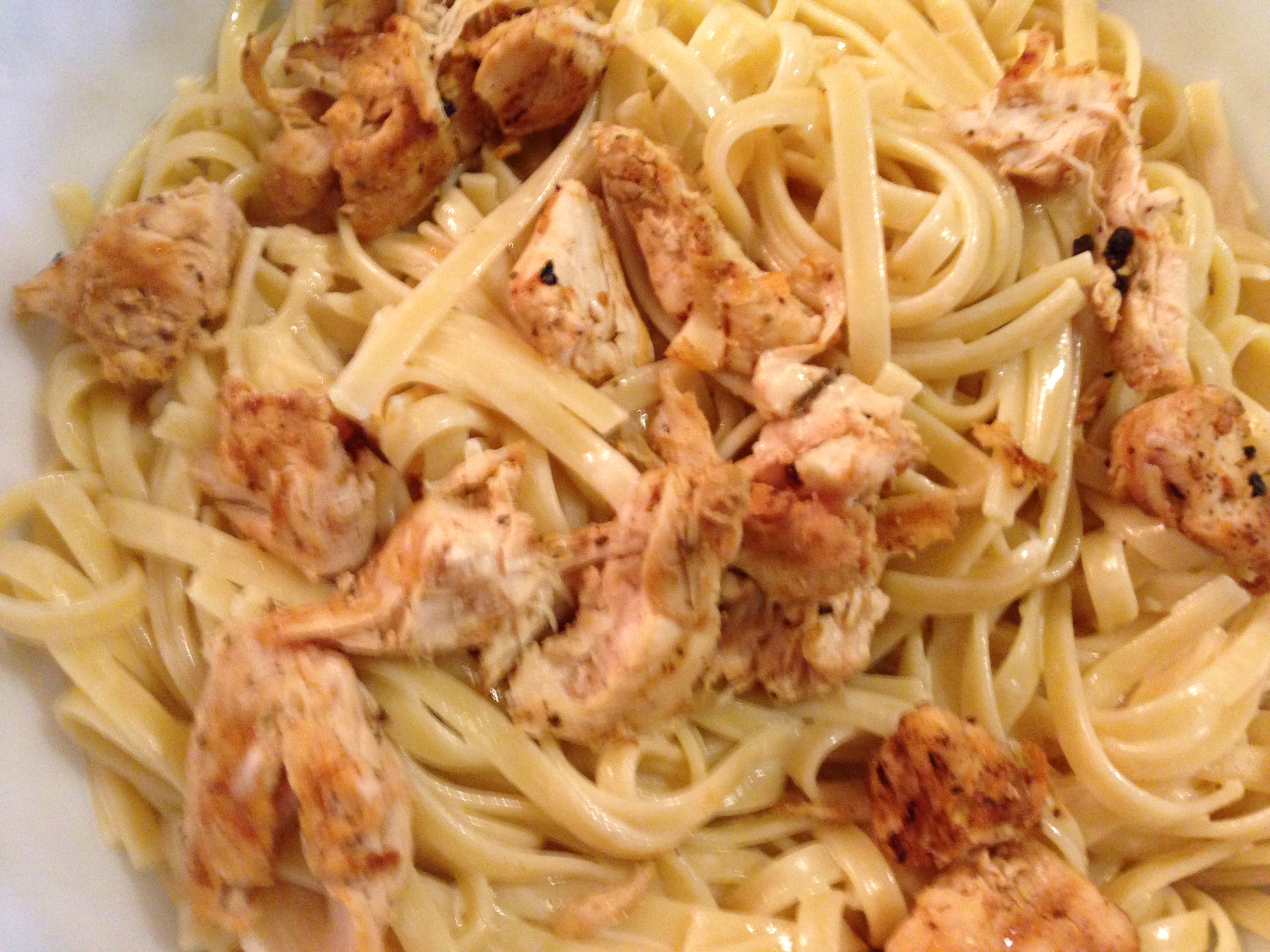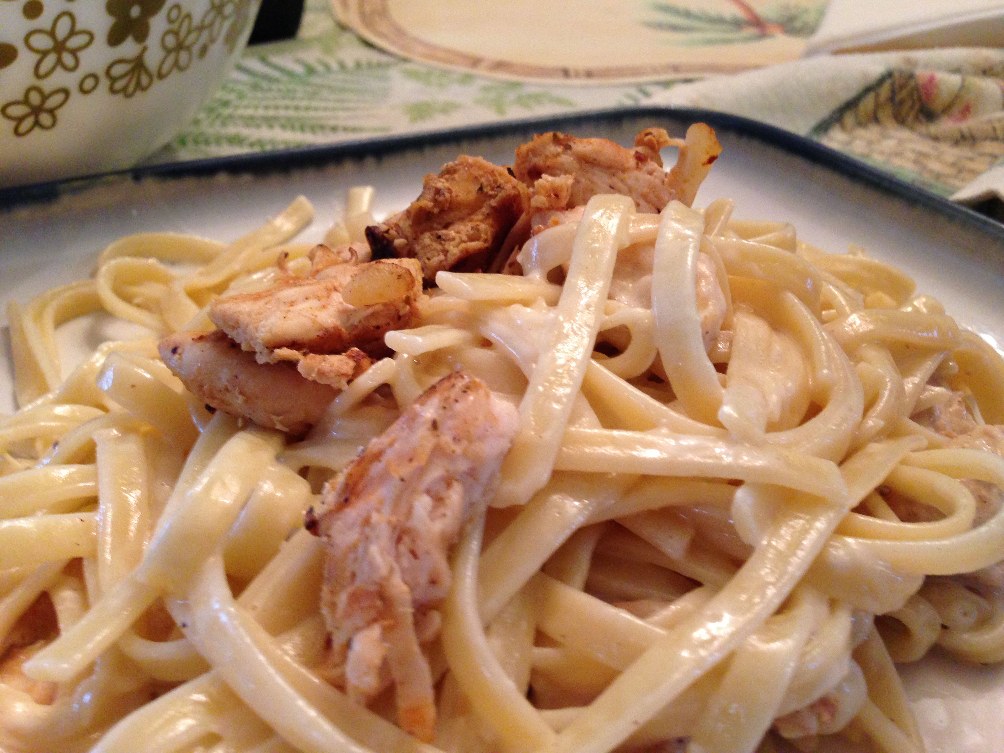 Today, while it started out kinda sad, has been a good day. I am currently in food coma status… trying to eke out this entry while feeling so deliciously full from Fettucine. I got the recipe from The Pioneer Woman who has got to be my blogging hero. I just added grilled chicken to it because MEAT.