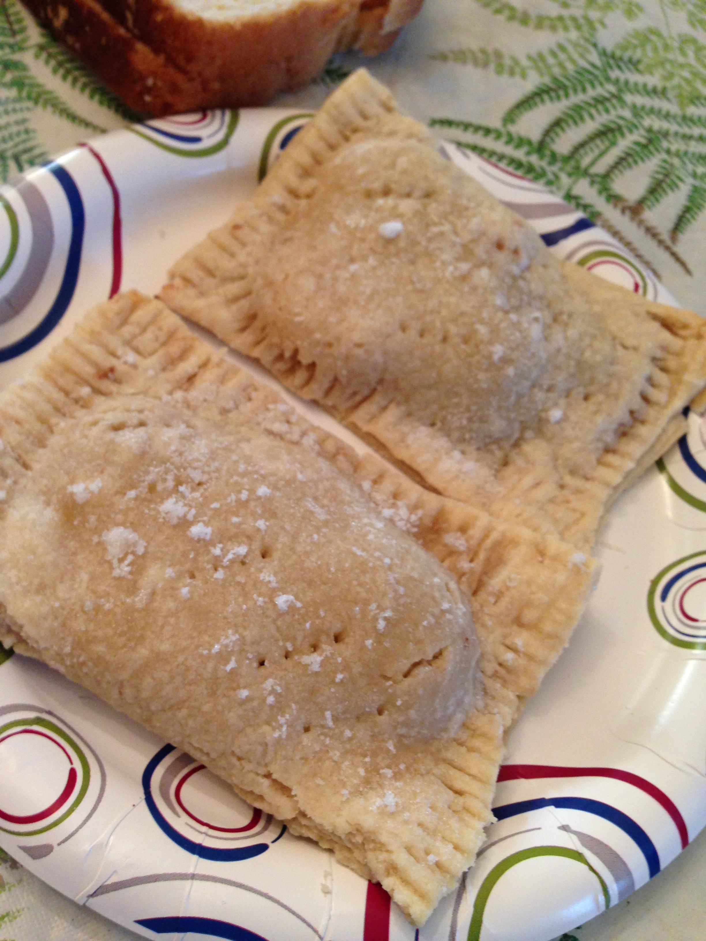 Then I threw it into the toaster oven, because I wasn’t going to turn on the big oven for two wee hand pies. I had the toaster oven at 350 and toasted for 10+ minutes. Looking back, I probably should have toasted it longer. and maybe sprinkled more sugar into the filling.
