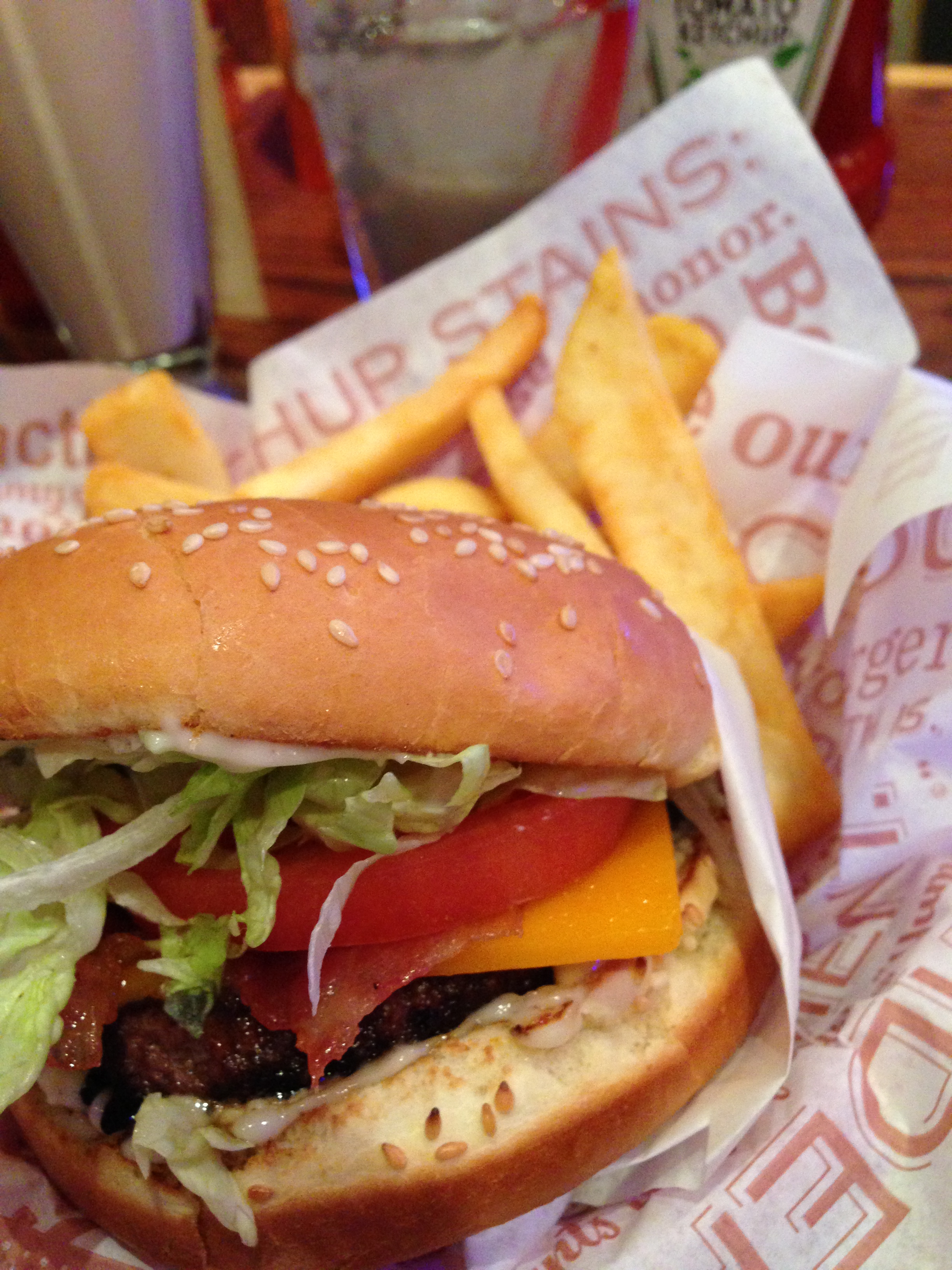 While I was waiting for Optimus to get fixed, I went off and got some Red Robin for my forever alone lunch. Cheeseburger, milkshake and bottomless fries? OM NOM NOM.