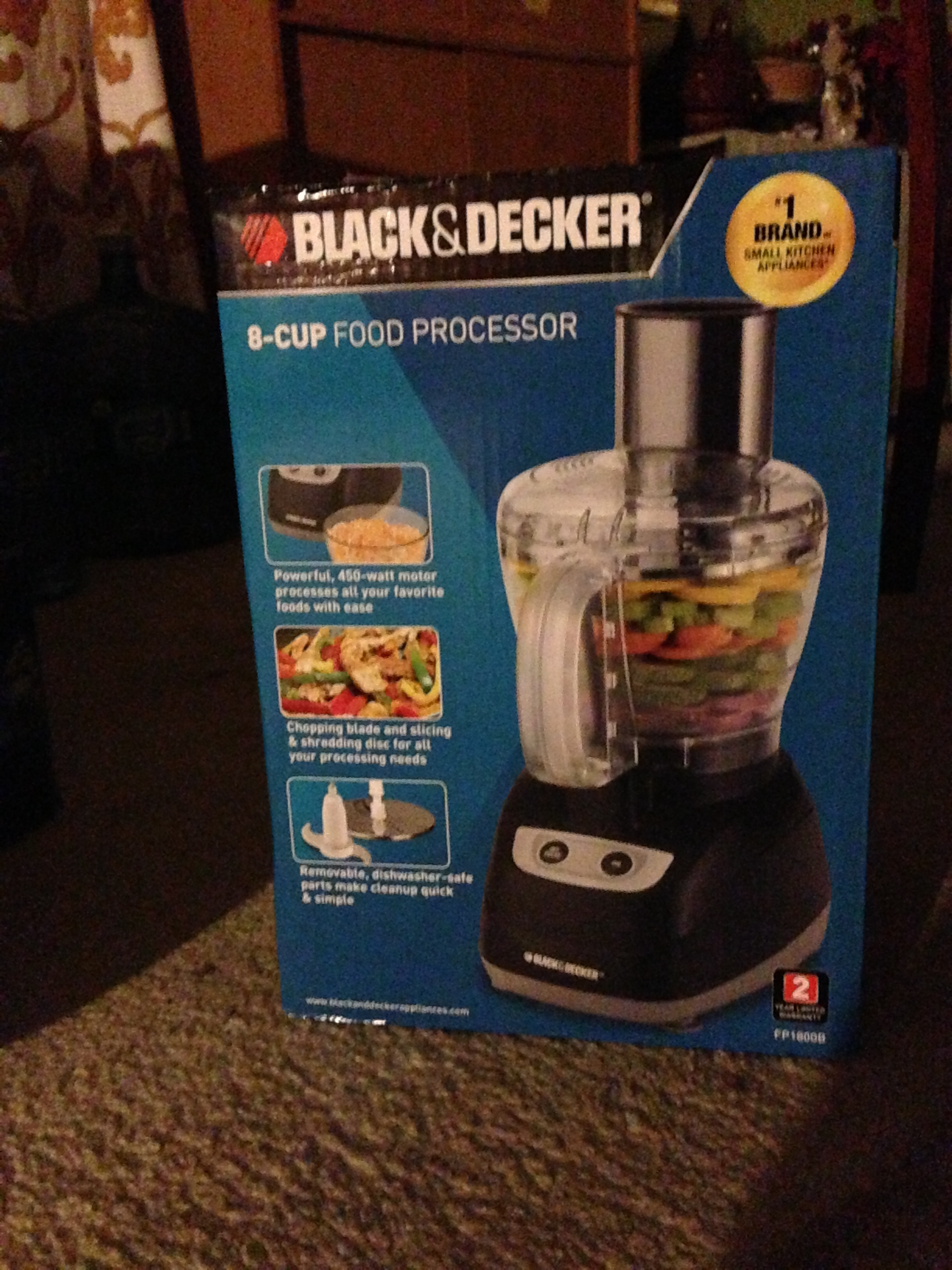 As it’s my birthday month, I asked her for a food processor because well… doing it by hand sucks. So, since she wasn’t sure if we’d see each other again before my birthday, she brought it… unwrapped. Nice.