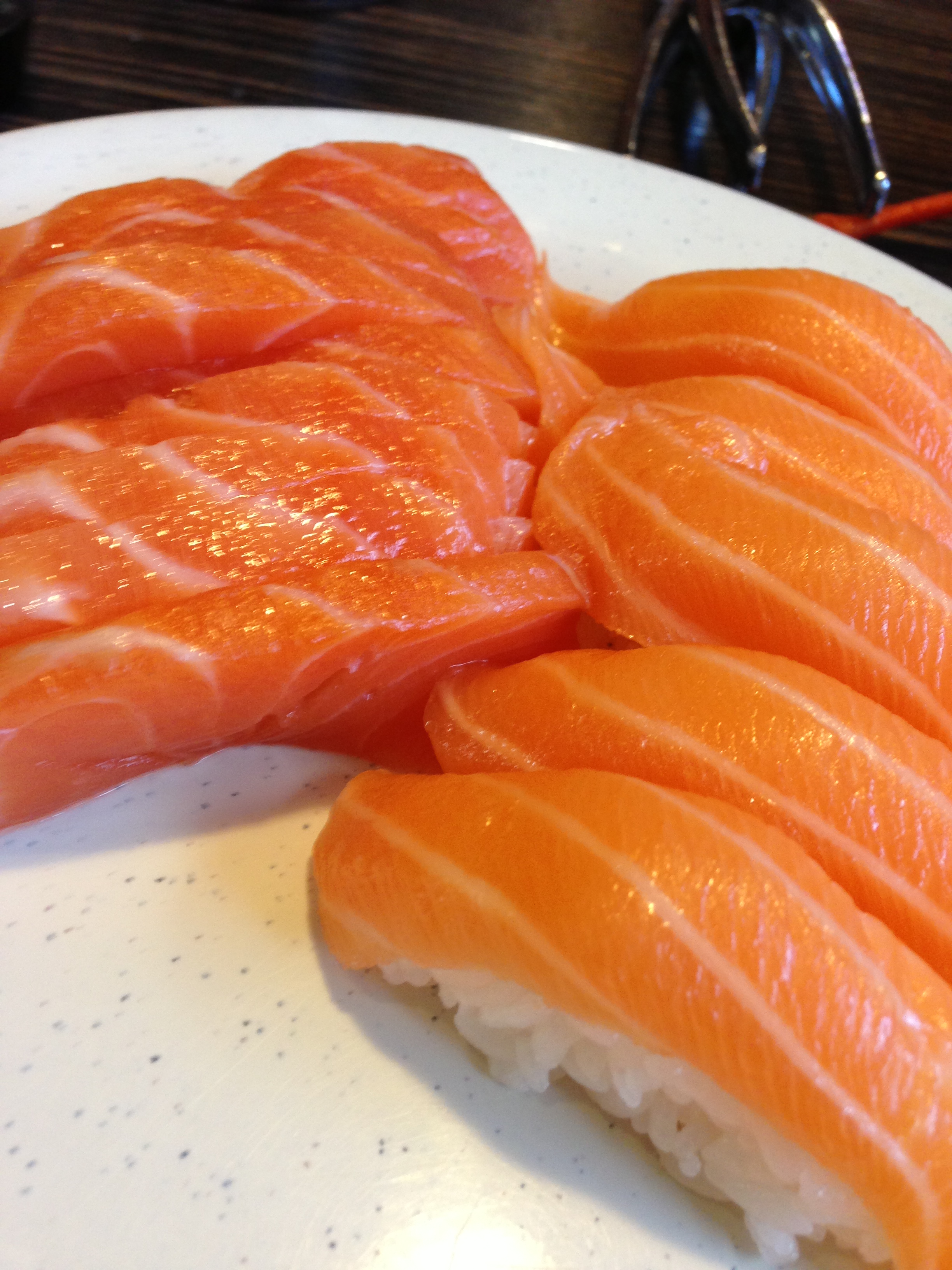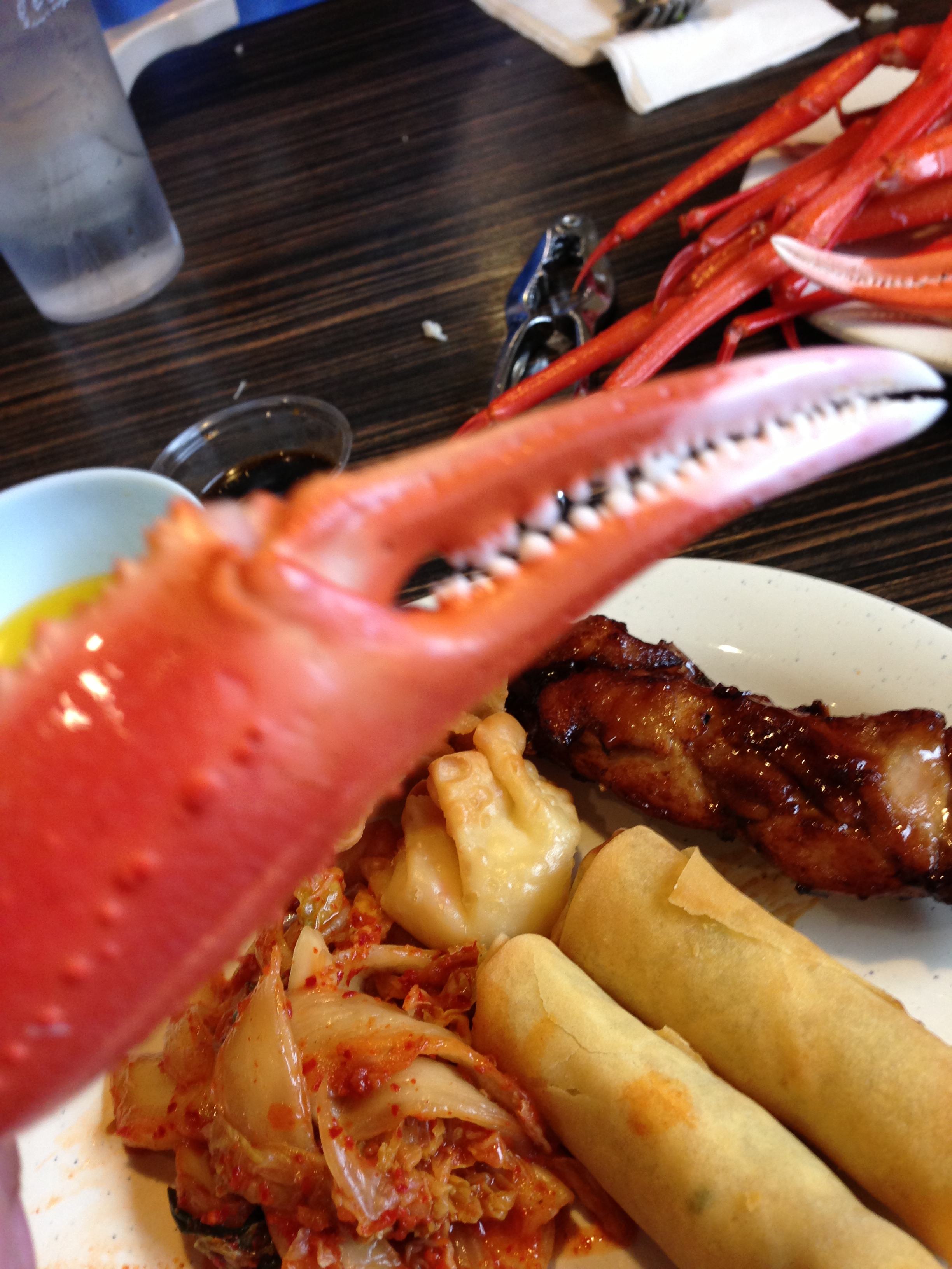 After we spent hours walking up and down aisles littered with random items we went to my favorite buffet where they serve crab legs and crappy sashimi on the weekends. I love salmon sashimi and if I can’t spend $9183274 on good quality fish, I may as well spend $15.99 for some that’s mediocre.