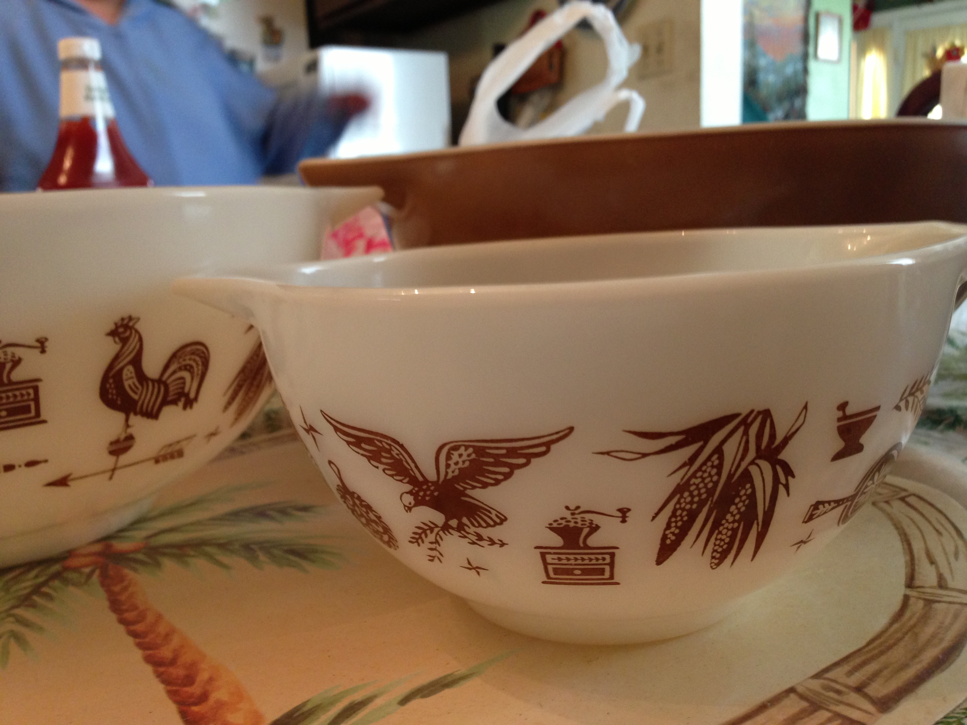 Three Pyrex Bowls – $10 The best part of today. I wish they were the blue ones.